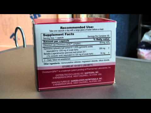 (в одной капсуле): хром (Chromium + GPMTM) – 50 мкг; экстракт листа джимнемы (Gymnema sylvestre) 6:1 (25% джимнемовой кислоты) (эквивалентно 1200 мг порошка из листьев джимнемы) – 200 мг, экстракт листа банабы (Lagerstroemia speciosa) 20:1 (1% коросолиевой кислоты) (эквивалентно 320 мг порошка из листьев банабы) – 16 мг.